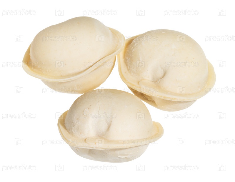 Три замороженных пельмени крупным планом изолированы