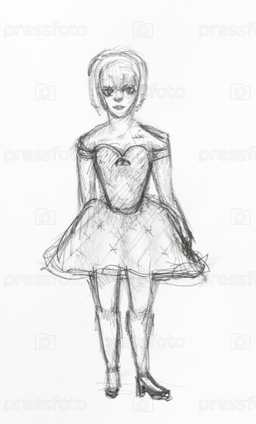 Эскиз девушки в широком коротком вечернем платье