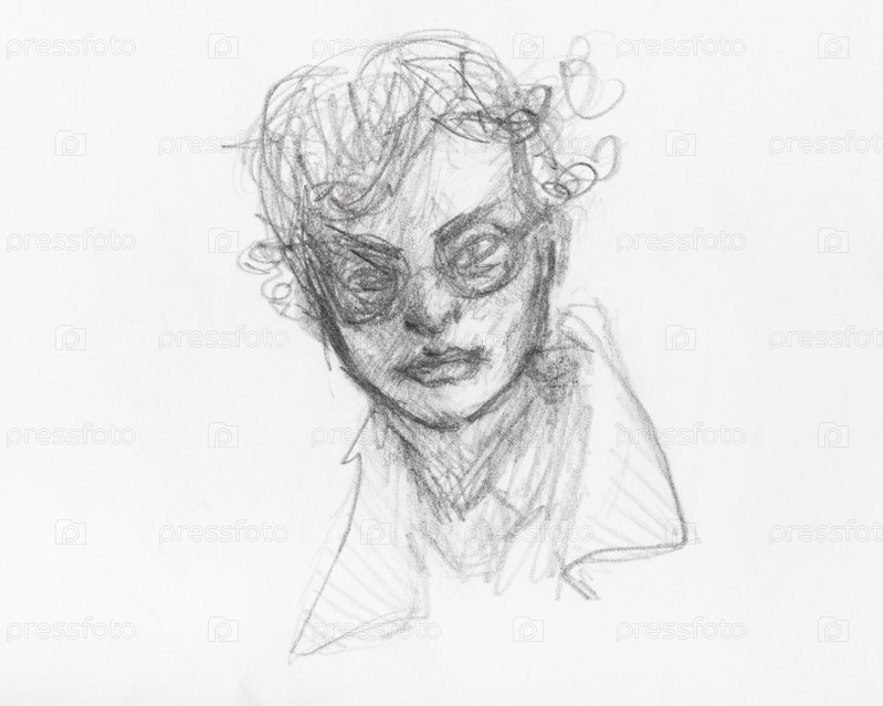 Эскиз головы мальчика в очках и с вьющимися волосами