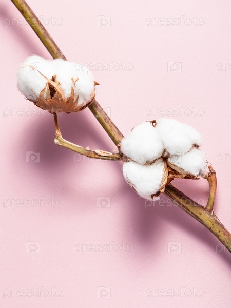 Веточка со спелыми коробочками с ватой на розовом