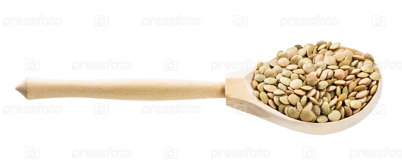 Деревянная ложка с цельной крупной зеленой чечевицей