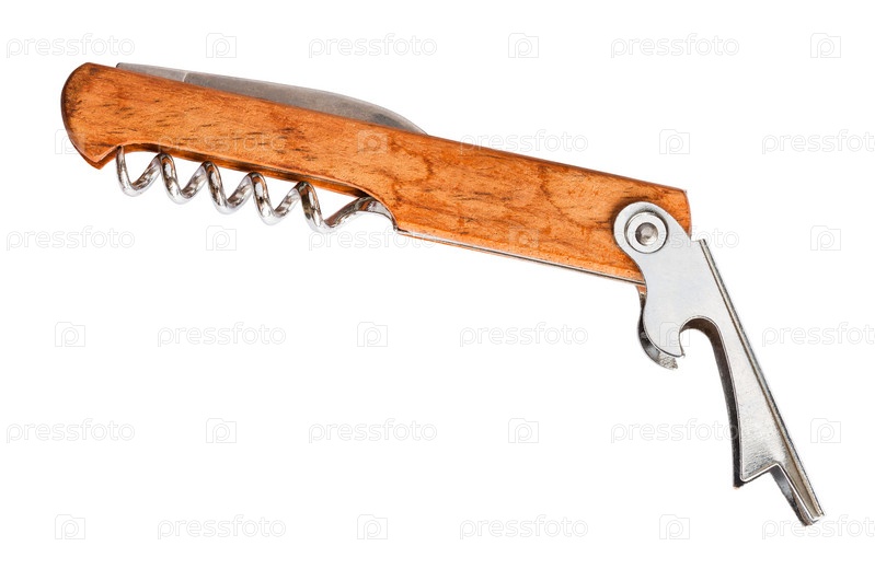 Открывалка для бутылок в винном ноже, изолированном на белом