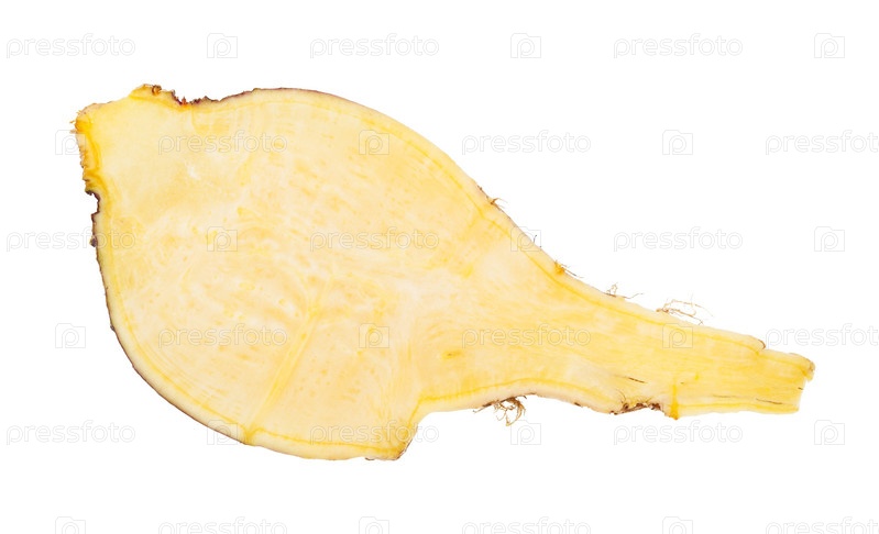 Ломтик свежего корня брюквы, выделенный на белом