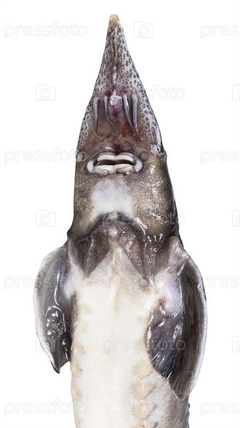 Вид снизу на вырезку головы свежей осетровой рыбы