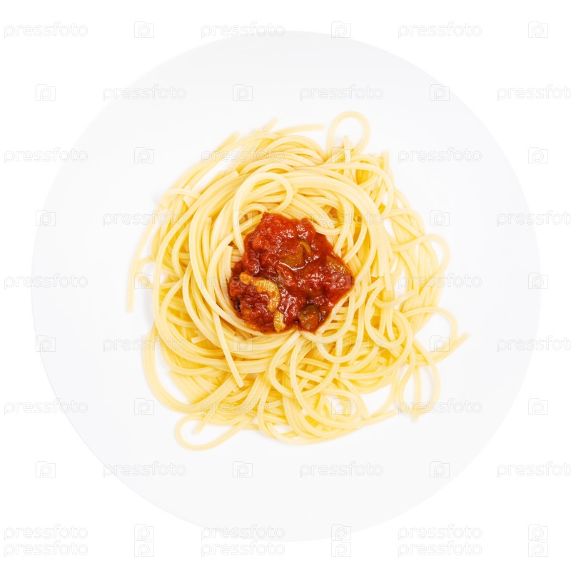Вид сверху на спагетти алла Соррентина изолирован