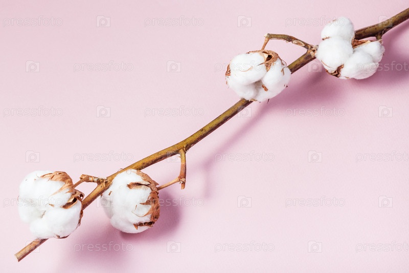 Натуральная сушеная ветка хлопчатника на розовом