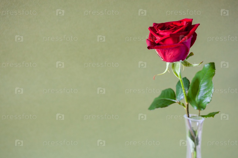 Свежий красный цветок розы на фоне цвета хаки