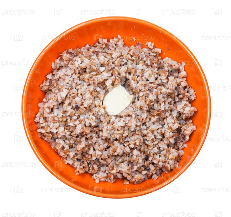 Вид сверху на гречневую кашу с маслом