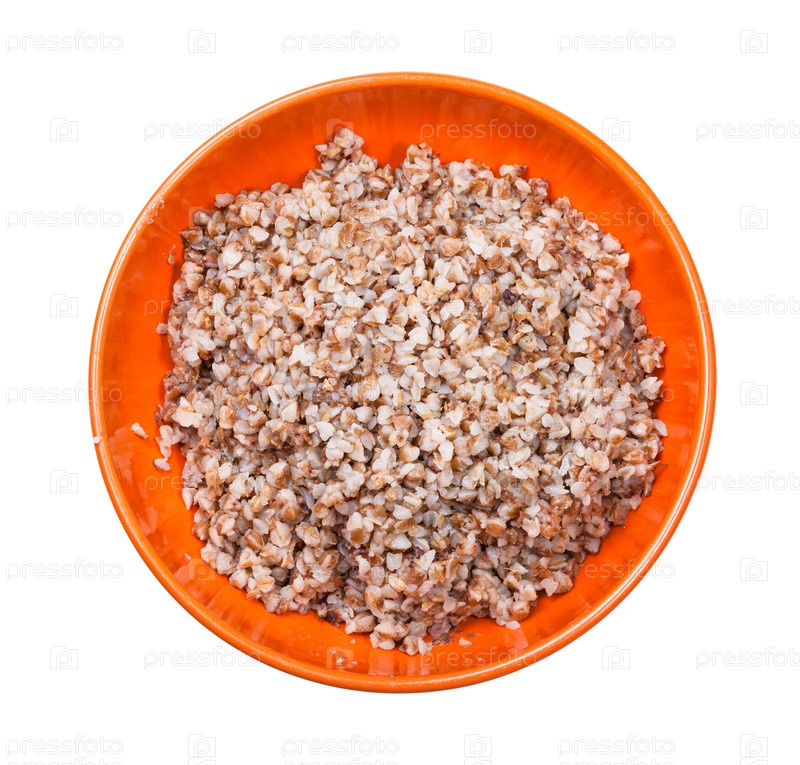 Вид сверху на гречневую кашу в миске изолирован