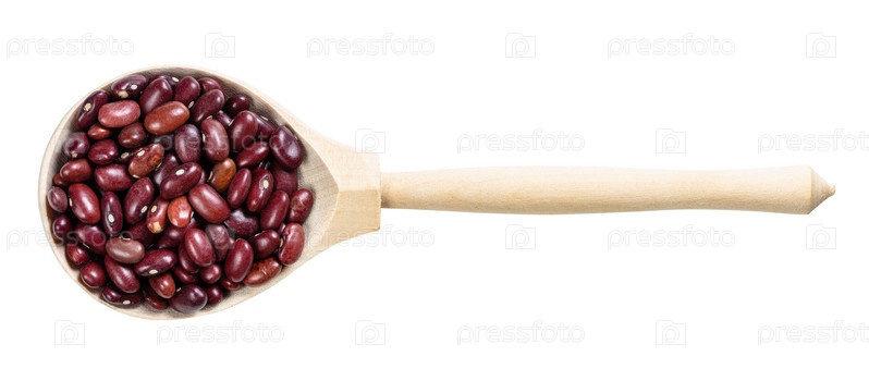 Вид сверху на деревянную ложку с мексиканской красной фасолью