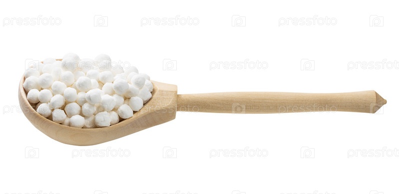 Тапиока в деревянной ложке изолирован