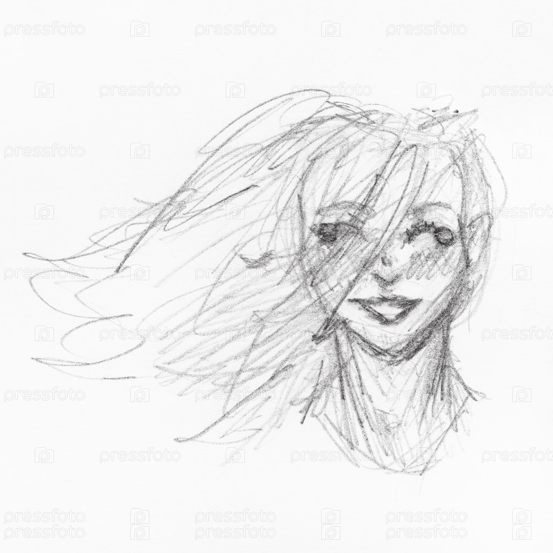Голова счастливой девушки с развевающимися на ветру волосами