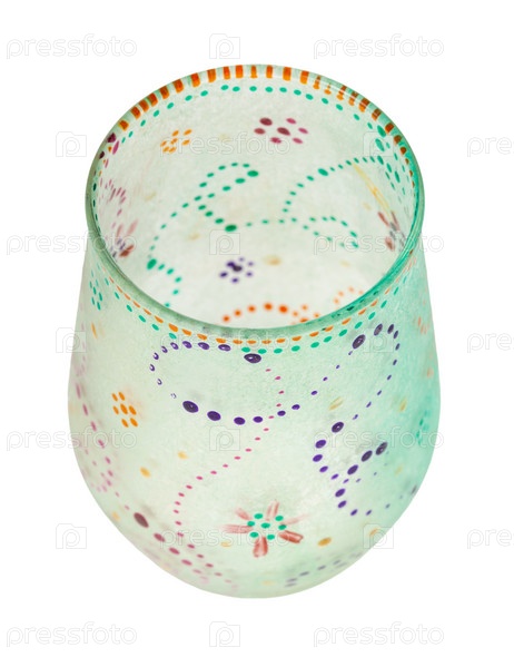 Пустая раскрашенная вручную стеклянная чашка изолирована