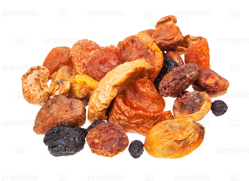 Куча различных сухофруктов, изолированных на белом