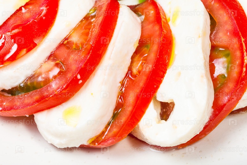 Нарезанный сыр моцарелла и помидор крупным планом
