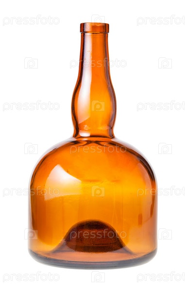Пустая широкая коричневая бутылка ликера, изолированная на белом