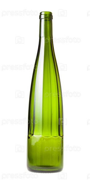 Пустая граненая бутылка зеленого вина, изолированная на белом