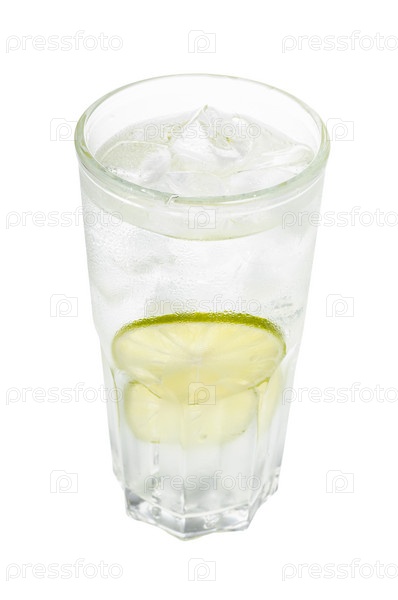 Джин-тоник в стакане со льдом и лаймом