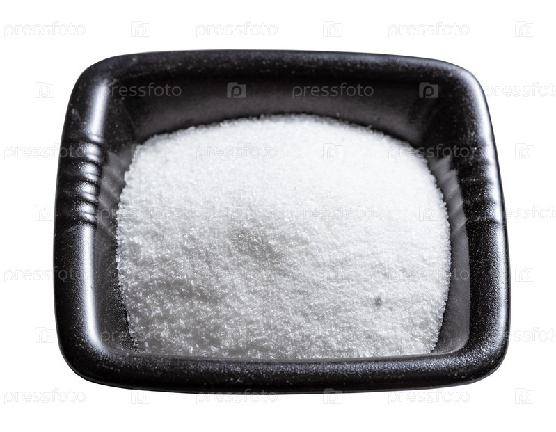 Глутаматный ароматизатор в черной миске изолирован