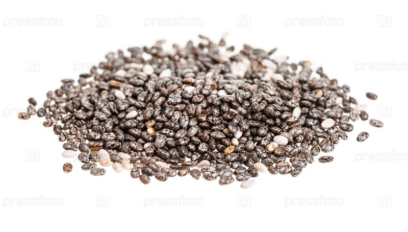 Куча семян чиа на белом фоне