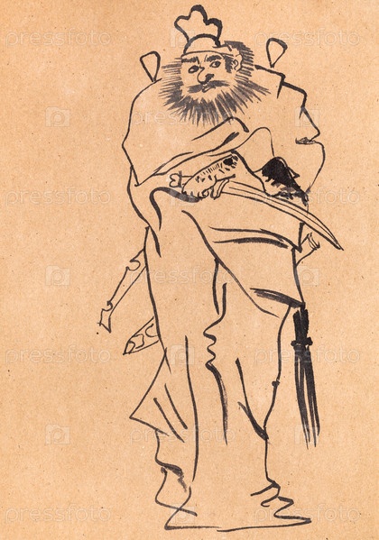 Мифологический персонаж Чжун Куй, нарисованный суми-э
