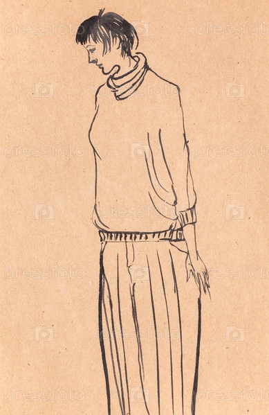 Высокая женщина в свитере и широких штанах нарисована вручную