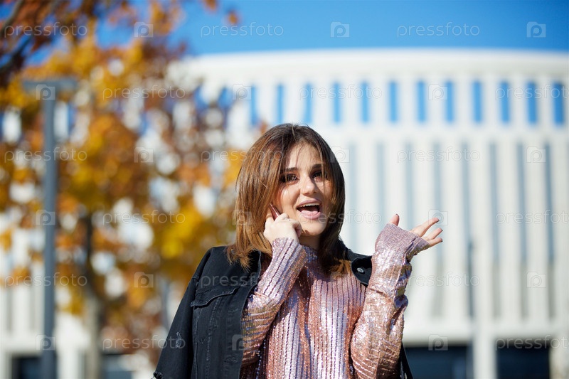 Красивая счастливая девушка с мобильным телефоном