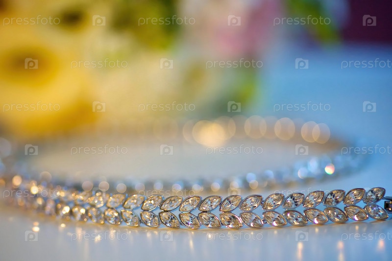 Роскошный браслет на руку невесты или шикарной женщины крупным планом. Ювелирные аксессуары