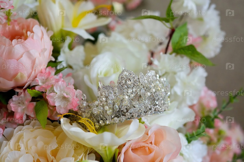 Роскошная тиара для невесты или принцессы крупным планом. Ювелирные аксессуары