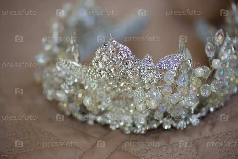 Роскошная тиара для невесты или принцессы крупным планом. Ювелирные аксессуары