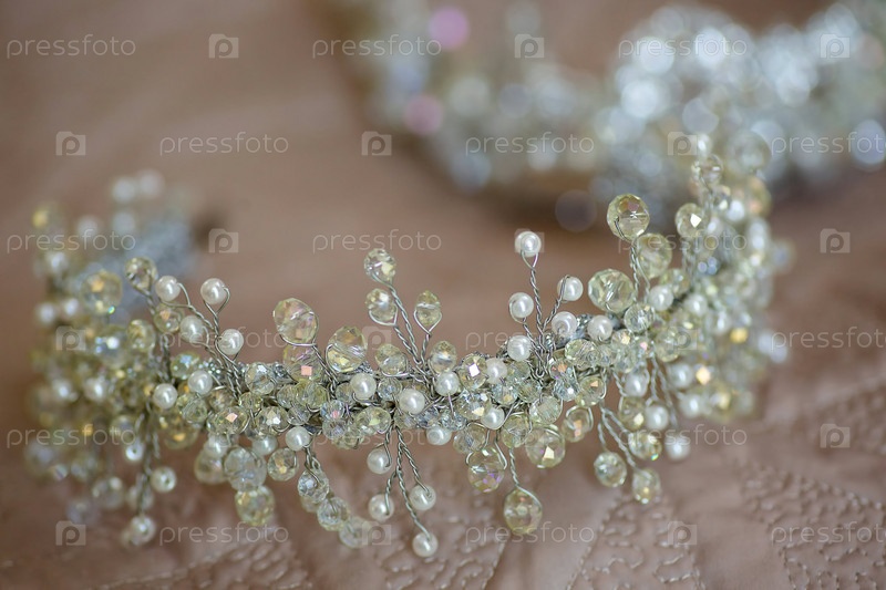 Роскошная тиара для невесты или принцессы крупным планом. Ювелирные аксессуары