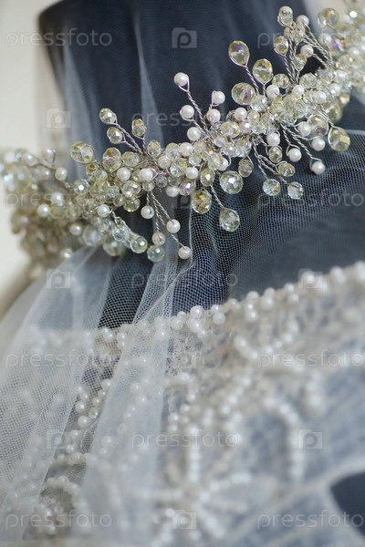 Роскошная тиара для невесты или принцессы крупным планом. Ювелирные аксессуары