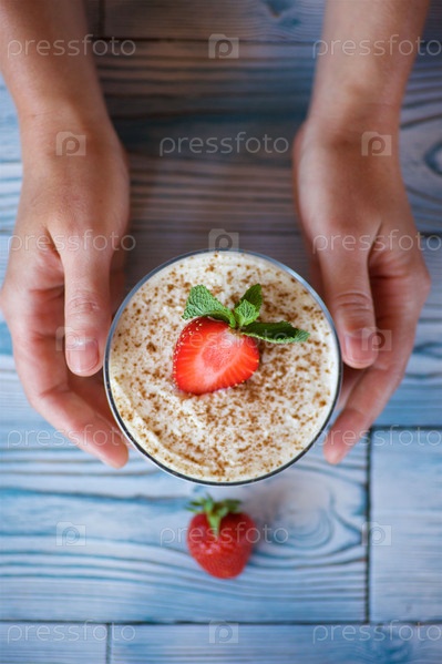 Десерт с кусочком клубники