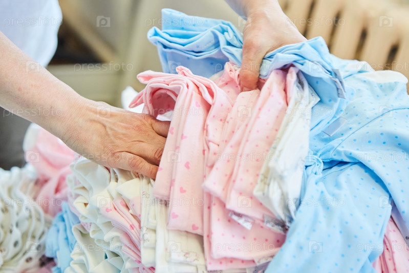 Товарные предметы одежды перемещаются работником магазина или фабрики