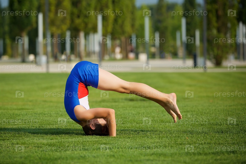 Мальчик-гимнаст школьного возраста в костюме демонстрирует элементы спорта. Мальчик-гимнаст школьного возраста в костюме демонстрирует элементы спорта