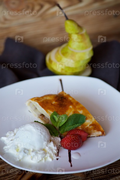 Штрудель с начинкой. Вкусная десертная выпечка, украшенная свежей клубникой