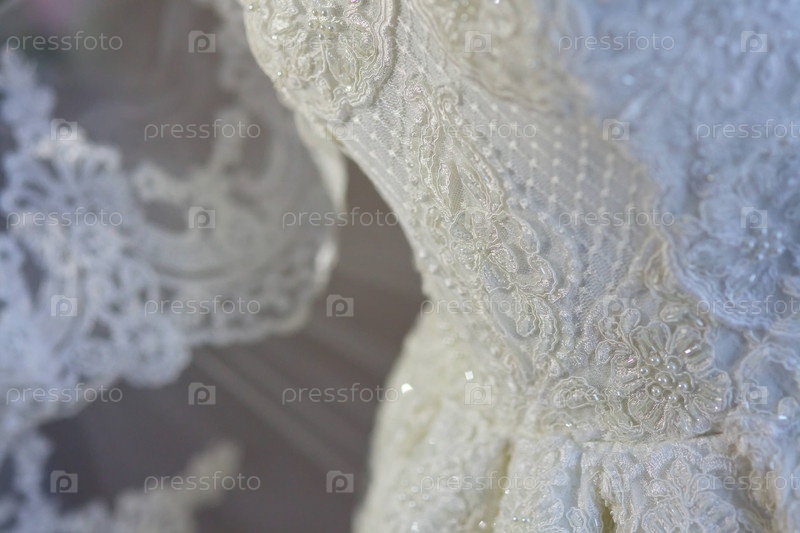 Кружево и вышивка бисером на ткани свадебных платьев