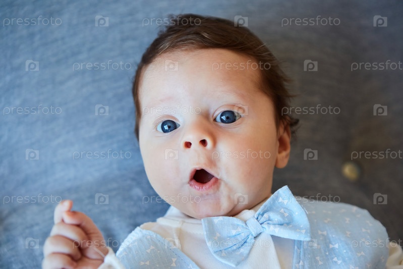 Маленький новорожденный мальчик. Концепция детства. Удивление
