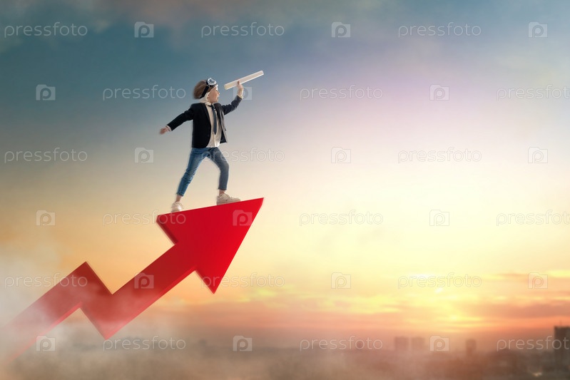 Бизнесмен ребенок на фоне заката