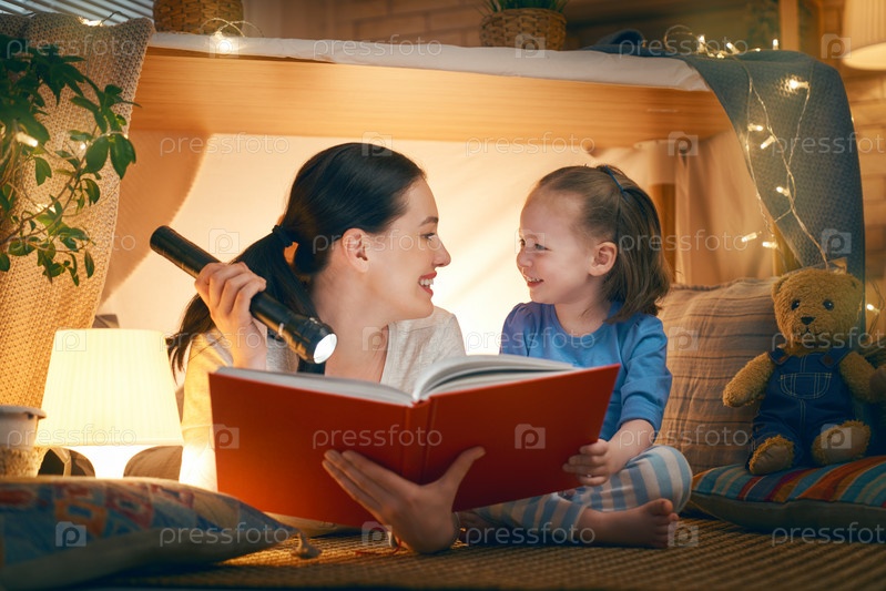 Мать и дочь играют в палатке