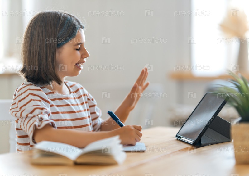 Девушка делает домашнее задание или онлайн-образование