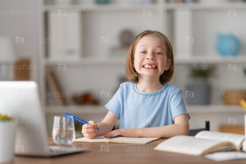 Девушка делает домашнее задание или онлайн-образование