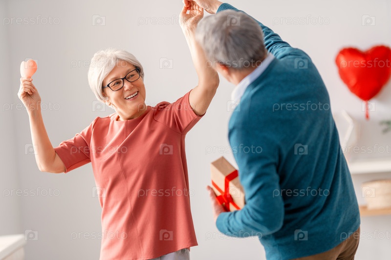 Пожилая пара в день святого валентина
