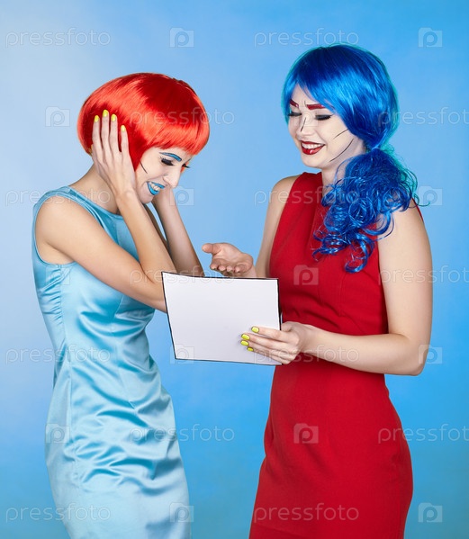 Портрет молодых женщин в стиле комического поп-арта. Женщины читают письмо