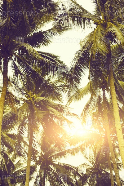 Яркое солнце над тропическими растениями