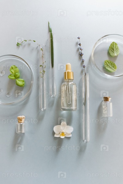 Набор различной посуды на столе в лаборатории