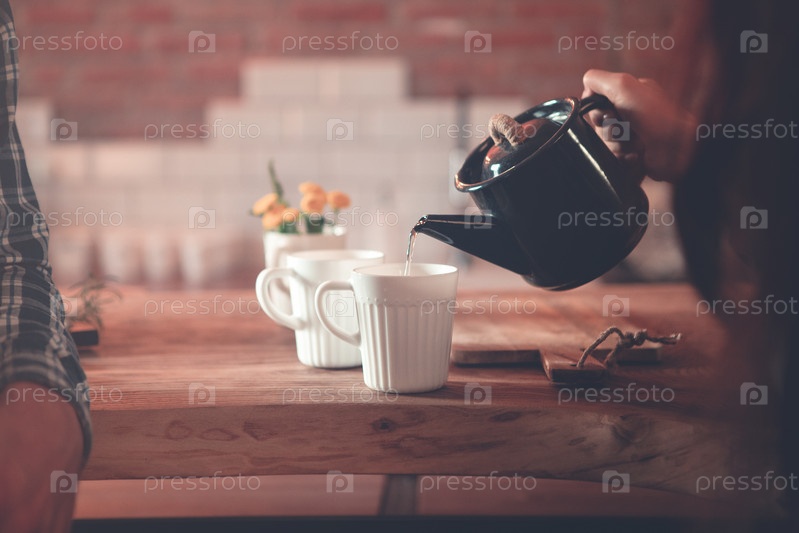 Пара пьет чай дома