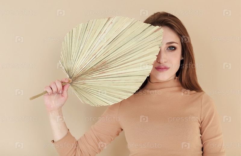 Молодая женщина закрыла лицо веером