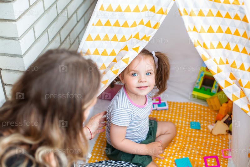 Бабушка и внучка играют вместе дома