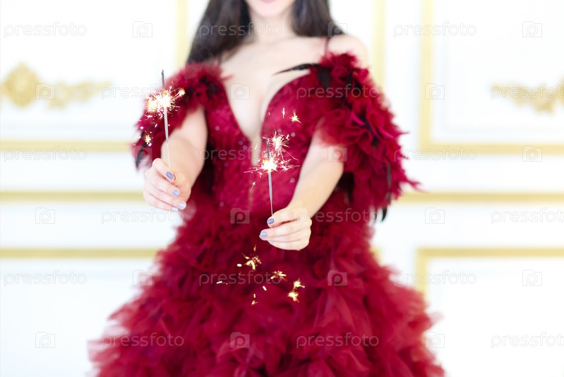 Великолепная женщина с бенгальскими огнями
